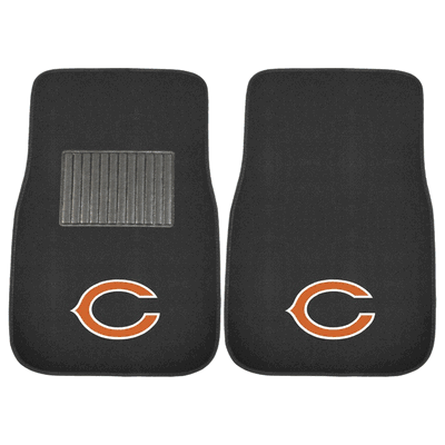 Chicago Bears 2-pc Embroidered Car Mat SetShow your team pride with this NFL - Chicago Bears 2-pc Embroidered Car Mats 18"x27". Protect the interior of your vehicle while showing off your team pride with Embroidered Car Mats by Sports Licensing Solutions. Universal fit makes it ideal for cars, trucks, SUVs, and RVs. The officially licensed mat features embroidered team logos in true team colors. Heel pad on drivers side for added durability and safety.