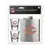 Boost your game day experience with this Chicago Bears Flask and Shot Glass Set. This set includes a sleek flask and two shot glasses, all featuring the team logo. It is dishwasher safe for easy clean up. Perfect for showing off your team spirit and enjoying drinks with friends. Made by Mojo Licensing. Shipping (Processing Time + Transit Time): Processing time is approximately 1-2 business days to leave the warehouse plus transit time. | |||||||||