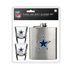Boost your game day experience with this Dallas Cowboys Flask and Shot Glass Set. This set includes a sleek flask and two shot glasses, all featuring the team logo. It is dishwasher safe for easy clean up. Perfect for showing off your team spirit and enjoying drinks with friends. Made by Mojo Licensing. Shipping (Processing Time + Transit Time): Processing time is approximately 1-2 business days to leave the warehouse plus transit time. | |||||||||
