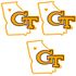 Impress fellow fans with this GA Tech Yellow Jackets Decals! It's a home state decal with a sporty twist! This Georgia Tech Yellow Jackets decal feature the team logo over a silhouette of the state in team colors and a heart marking the home of the team. The decal is approximately 5 inches on low tack vinyl.