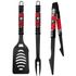 This Georgia Bulldogs 3 pc Black Tailgater BBQ Set is a must have for any fan. The eye-catching team color and chrome graphics on this set make it a game day favorite! These barbeque tools are made to last whether you are using them for camping, tailgating or a patio party you will have quality grill tools for years to come. The set includes a large spatula with a bottle opener feature and sharp serrated edge, strong tongs and fork all in a matte black finish. The 17 inch length keeps you far from the flames. The quality of the tools make them a great choice for a grill accessory must have. Features: