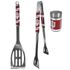 Impress fellow fans with this Indiana Hoosiers 2 Piece BBQ Set with Seasoning Shaker! This stainless steel 2pc BBQ grill set is a tailgater's best friend. The colorful and large team graphics on each of the barbecue tools let's everyone know you are a fan! The set in includes a spatula and tongs with the Indiana Hoosiers logo. The tool set comes with a compact shaker is 2 inch tall with a twist top that closes off the holes at the top making it perfect for travel preventing those messy spills. The shaker has wide holes perfect for keeping your pepper seeds or cheese toppings.
