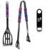 This stainless steel 2 pc BBQ grill set is a tailgater's best friend. The colorful and large team graphics on each of the barbecue tools let's everyone know you are a fan! The set in includes a spatula and tongs with the Kansas Jayhawks proudly display on each tool. Whether you are grilling on your patio or tailgating with your friends this set is a party favorite. The 14 inch length makes these tools easy to pack for camping, travel to the big game or any outdoor event. Comes with a heavy-duty steel opener that is extra long, with a durable vinyl covering. The extra length provides more leverage for speed opening and the opener features a large printed team logo. Features: