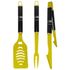 This LSU Tigers 3 pc Color and Black BBQ Set is an ideal grilling accessory. The eye-catching black and chrome graphics on this set make it a game day favorite! The high-quality, 3 pc LSU Tigers BBQ grill set will make any grill master smile. These barbeque tools are made to last whether you are using them for camping, tailgating or a patio party you will have quality grill tools for years to come. The set includes a large spatula with a bottle opener feature and sharp serrated edge, strong tongs and fork all in a team color finish with black team logos. The 17 inch length keeps you far from the flames. The quality of the tools make them a great choice for Father's Day or Christmas gifts, they are really a grill accessory must have. Features: