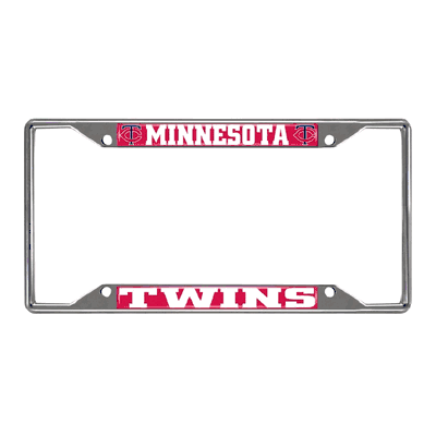 This Minnesota Twins Chrome Metal License Plate Frame is a great way to show your team pride. Real chrome metal keeps your plate looking great season after season. Eye-catching City or University name is featured at the top and team name is at the bottom are both in vibrate team colors. To prevent any annoying rattling sounds, there are 4 pre drilled holes to ensure a secure fit. The Frame fits perfectly around license plates without covering your registration sticker (if applicable). Size is 12.25" x 6.25". Features:
