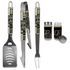 Impress fellow fans with this Purdue Boilermakers 3 Piece Tailgate BBQ Set with Salt and Pepper Shakers! The eye-catching chrome graphics on this set make it a game day favorite! The high-quality, 420 grade stainless steel 3 pc Purdue Boilermakers BBQ grill set will make any grill master smile. These barbeque tools are made to last and the tool set includes a large spatula with a bottle opener feature and sharp serrated edge, strong tongs and fork. The 16 inch length keeps you far from the flames. Add in our classic salt and pepper shakers and you?re ready for any game day event! The diner replica salt and pepper shakers are glass with screw top lids and team graphics on the front.