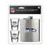 Boost your game day experience with this Seattle Seahawks Flask and Shot Glass Set. This set includes a sleek flask and two shot glasses, all featuring the team logo. It is dishwasher safe for easy clean up. Perfect for showing off your team spirit and enjoying drinks with friends. Made by Mojo Licensing. Shipping (Processing Time + Transit Time): Processing time is approximately 1-2 business days to leave the warehouse plus transit time. | |||||||||